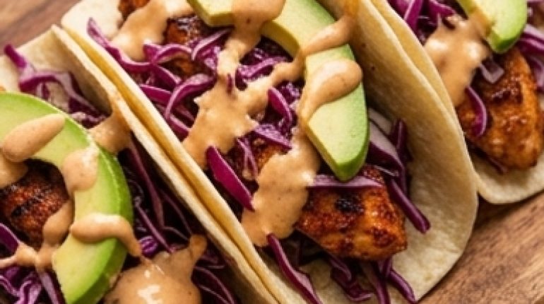 📌 Chipotle Hähnchen-Tacos mit Apfel-Rotkohl-Slaw und hausgemachter Crema