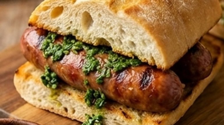 - Ciabatta-Brot oder Baguettine — Das Brot muss fest sein. Kein weiches Milchbrötchen-Baguette — das Brot wird sich mit dem Fleischsaft und dem Chimichurri vollsaugen, und wenn es zu weich ist, fällt es beim zweiten Bissen auseinander. Eine luftige Ciabatta oder ein halbes Baguette eignen sich hervorragend.