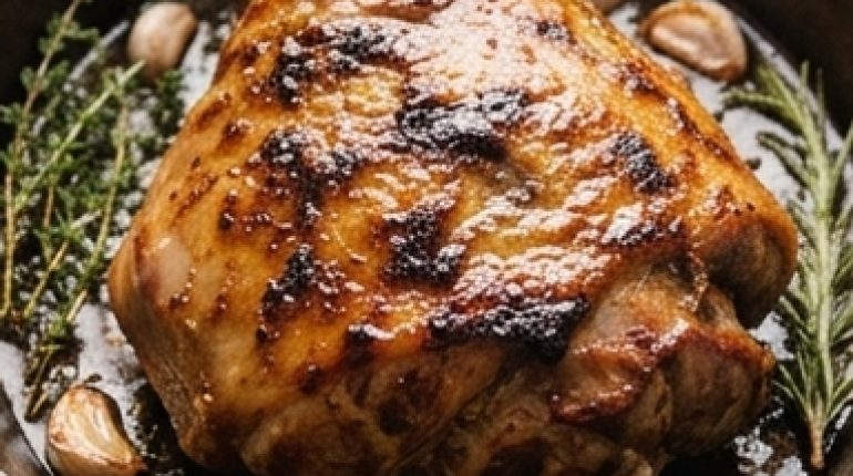 📌 Confierte Lammschulter mit Knoblauch, Honig und Senf