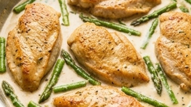 📌 Cremiges Zitronen-Hähnchen mit Spargel aus einer Pfanne