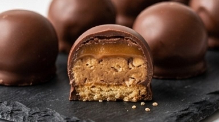 Die meisten Osterpralinen aus dem Supermarkt bestehen aus schlecht temperiertem Zucker, der schon in der Hand schmilzt, bevor er den Mund erreicht. Diese Happen sind etwas anderes. Drei Schichten, drei Texturen – ein Ergebnis, das es absolut rechtfertigt, den Tag in der Küche zu verbringen.