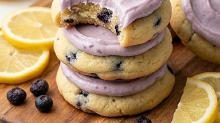 Bei einem Zitronenkeks denken die Leute oft an etwas Trockenes, zu Süßes mit diesem künstlichen Geschmack, der an der Zunge klebt. Diese Cookies sind das genaue Gegenteil. Die Zitrone stammt von der Schale, das Lila der Glasur von echten gefriergetrockneten Blaubeeren, und die Textur — fluffig, dick, leicht elastisch beim Hineinbeißen — hat nichts mit dem zu tun, was man im Supermarkt kauft.