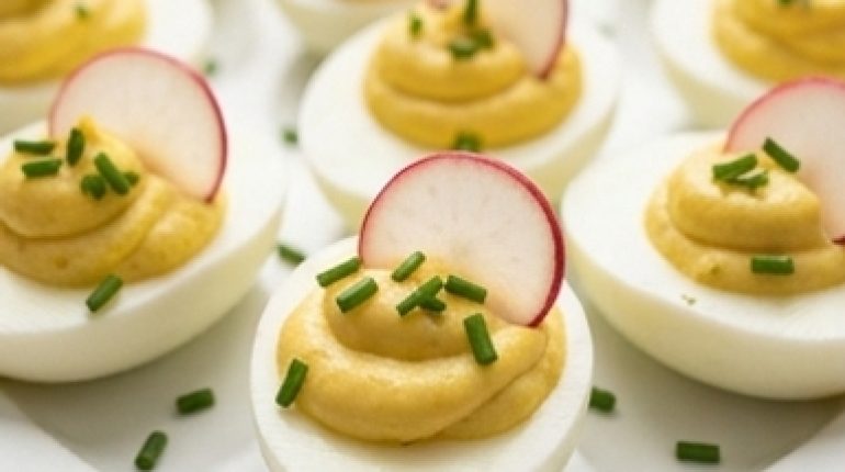Das Geräusch des hartgekochten Eies, das man gegen das Waschbecken klopft und dann unter der Handfläche rollt, um die Schale in einem Stück zu entfernen — das ist das Signal, dass etwas Gutes kommt. Gefüllte Eier (Oeufs mimosa) kennt jeder. Wenige trauen sich heran, als wäre es kompliziert. Es ist nicht kompliziert.