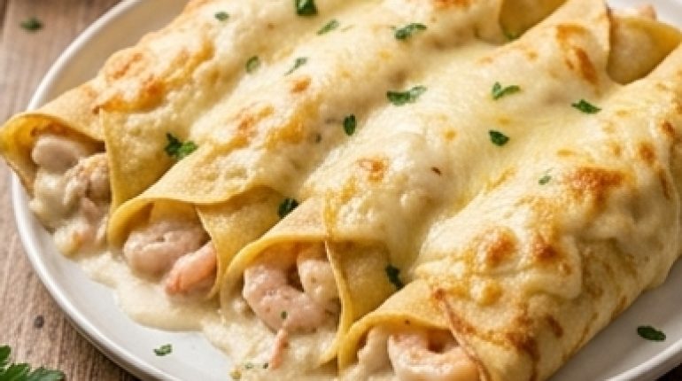 📌 Gefüllte Crêpes mit cremigen Meeresfrüchten