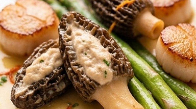 Haben Sie jemals auf ein Sterne-Menü geschaut und gedacht, dass man das zu Hause nie hinbekäme? Mit Jakobsmuschel-Mousse gefüllte Morcheln, grüner Spargel, Blutorangenzesten — auf dem Papier klingt das einschüchternd. In der Küche sind es drei großartige Saisonprodukte, ein Spritzbeutel und zehn Minuten Garzeit.