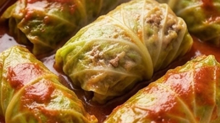 📌 Gefüllte Kohlrouladen mit Rindfleisch und Reis in geschmorter Tomatensauce