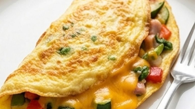 📌 Gefülltes Omelett mit Truthahnschinken und Gemüse