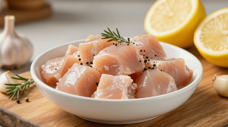Gegrilltes Hähnchen mariniert mit Zitrone und geräuchertem Paprika: Dieses Express-Rezept verwandelt einfache Hähnchenbrustwürfel in saftige und schmackhafte Häppchen. Begleitet von einer cremigen Knoblauch-Parmesan-Sauce sind sie in nur 30 Minuten zubereitet. Perfekt als Aperitif oder leichte Mahlzeit, offenbaren diese Häppchen einen Marinaden-Trick, der den entscheidenden Unterschied macht.