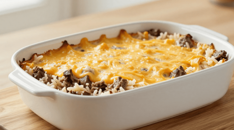 Hektische Abende unter der Woche verlangen nach schnellen und tröstlichen Lösungen. Dieser cremige Hackfleisch-Reis-Auflauf kombiniert eine geschmeidige Cheddar-Sauce mit einfachen Zutaten zu einem Familiengericht, das jedem schmeckt. In nur 30 Minuten verwandelt dieses Rezept Küchen-Basics in eine vollständige und sättigende Mahlzeit.