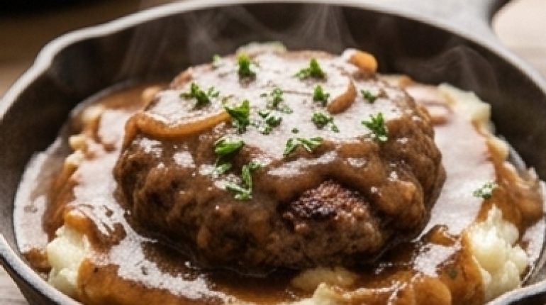 Hacksteak mit brauner Sauce nach Amish-Art