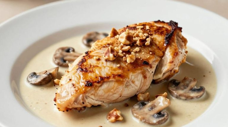 📌 Hähnchen-Innenfilets mit Waldpilzsauce: das cremige Rezept mit Pilzen und Haselnüssen, fertig in 35 Minuten