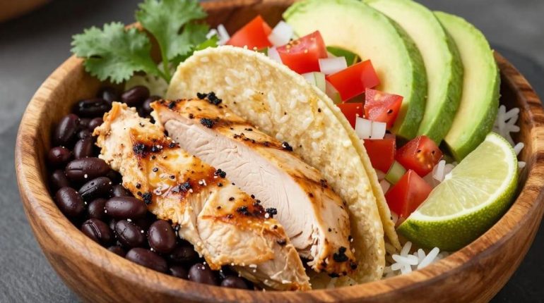 📌 Hähnchen-Taco-Bowls: 45g Protein und 9g Ballaststoffe pro Portion für Ihr schnelles Abendessen