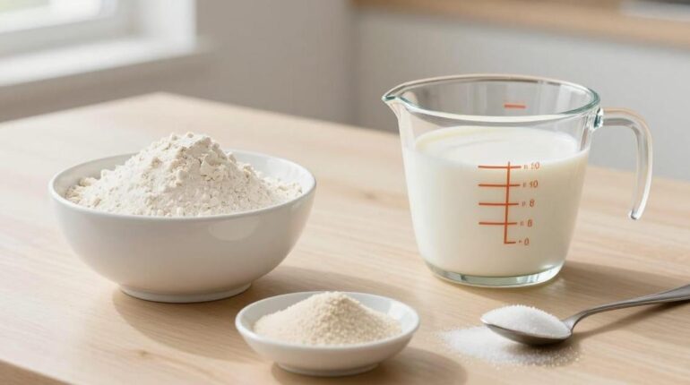 Frisches hausgemachtes Brot in weniger als einer Stunde? Dieses vereinfachte Rezept mit vier Zutaten verspricht weiche Brötchen, die einer handwerklichen Bäckerei würdig sind. Mehl, warme Milch, Trockenhefe und Zucker: Das ist alles, was Sie brauchen, um diese Express-Rolls zu backen, die Ihre Mahlzeiten verwandeln werden. Entdecken Sie die Methode, die Schnelligkeit und Bäckerqualität vereint.