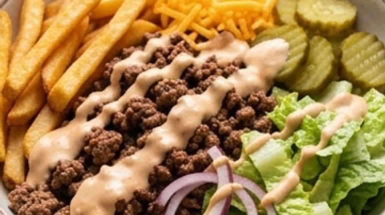 Die Burger Bowl ist wahrscheinlich das beste Argument gegen das Sandwich. Kein durchweichtes Brot mehr, keine Buns, die beim dritten Bissen auseinanderfallen — einfach nur der Genuss eines dekonstruierten Burgers mit allem, was wirklich zählt. Und für Gäste gibt es kaum etwas Unkomplizierteres.