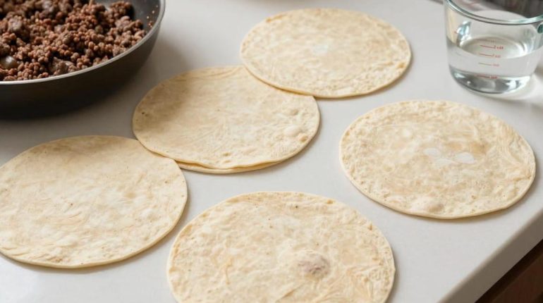 Ein Pfund mageres Rinderhackfleisch, vier große Tortillas aus…