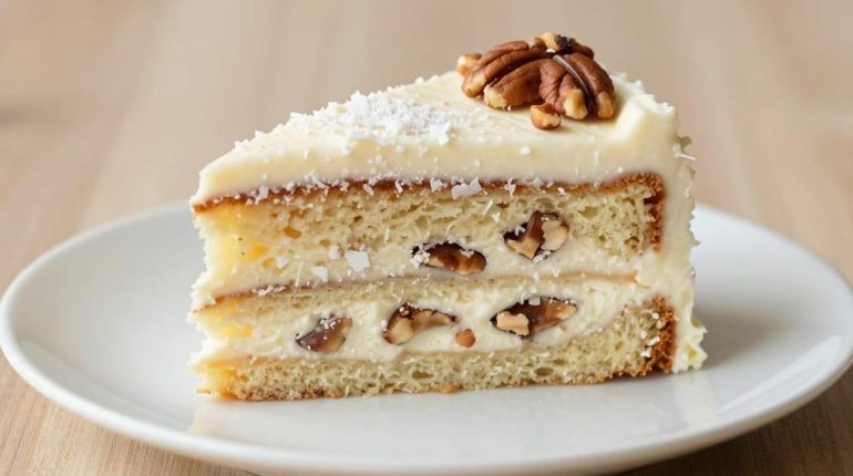 Dieser neu interpretierte italienische Sahnekuchen verwendet eine Backmischung, um das traditionelle Rezept zu vereinfachen und den mühsamen Schritt des Eischnee-Schlagens zu eliminieren. Buttermilch bewahrt die charakteristische Saftigkeit, während geröstete Pekannüsse und Kokosnuss jene Textur verleihen, die den Charme dieses Desserts ausmacht. Es ist kaum zu glauben, dass ein solches Ergebnis aus einer Fertigmischung stammt.