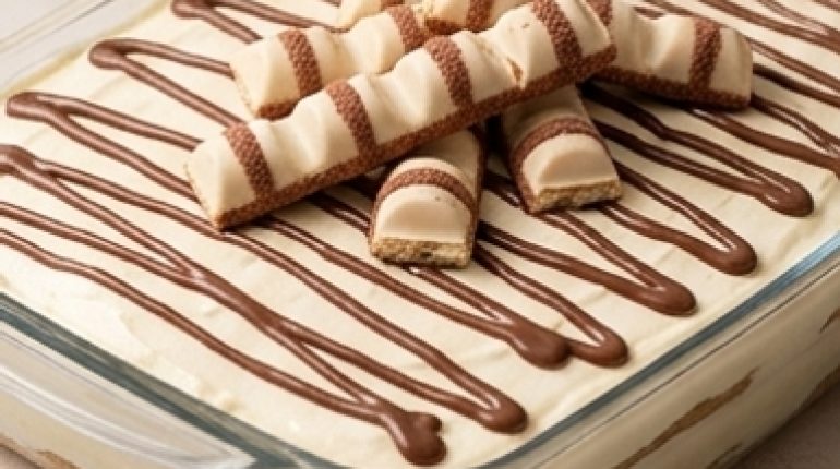 Hast du schon mal ein Kinder Bueno White geöffnet und dir gedacht, dass es viel zu schade ist, nach nur einem Riegel aufzuhören? Dieses Tiramisu ist die logische Antwort auf diese Frage. Fünfzehn Minuten Zubereitung, fünf Stunden im Kühlschrank — und das Ergebnis übertrifft den Aufwand bei weitem.