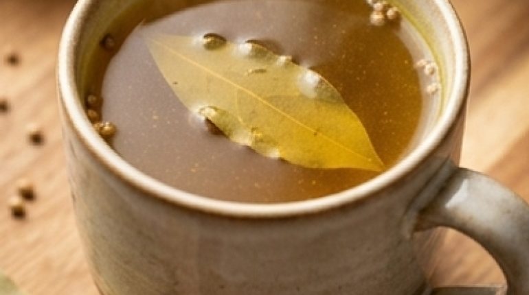 • Lorbeerblätter — Zwei oder drei getrocknete Blätter genügen. Lorbeer dominiert nicht — er bleibt im Hintergrund, rundet die Kanten des Kurkumas ab und bringt eine leichte kampferartige Note ein, die das Ganze komplexer macht. Vermeide Blätter, die seit drei Jahren im Schrank liegen und nach nichts mehr riechen: Getrockneter Lorbeer sollte ab und zu ersetzt werden.