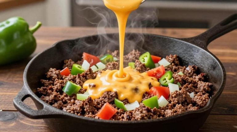 Der Nacho Cheese Beef Wrap erfindet das mexikanische Taco-Erlebnis neu, indem er eine unerwartete Note integriert: zerstoßene Doritos für eine süchtig machende Knusprigkeit. Dieses Fusionsrezept kombiniert gewürztes Rinderhackfleisch, Nacho-Käsesauce und grüne Chilischoten in einer großzügigen Tortilla. Einfach zuzubereiten und spektakulär im Geschmack, verwandelt dieser Wrap vertraute Zutaten in eine überraschende kulinarische Kreation.