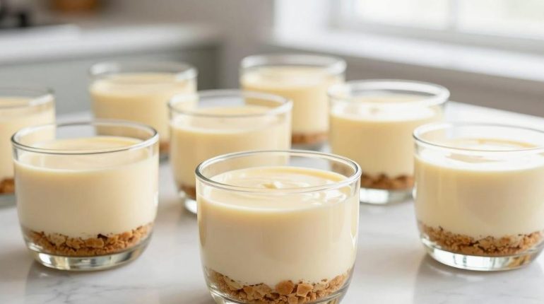 Dieses Dessert, das den Gaumen verwöhnt, kann ohne Backofen in einer Viertelstunde mit nur fünf leicht zugänglichen Zutaten zubereitet werden. Die cremige Textur und das perfekte Gleichgewicht zwischen Süße und Frische machen es zu einer idealen Alternative zu traditionellen Backwaren, die oft ein empfindliches Wasserbad und eine lange Backzeit erfordern. Entdecken Sie, wie Sie diese einfachen Zutaten in elegante Einzelportionen verwandeln.