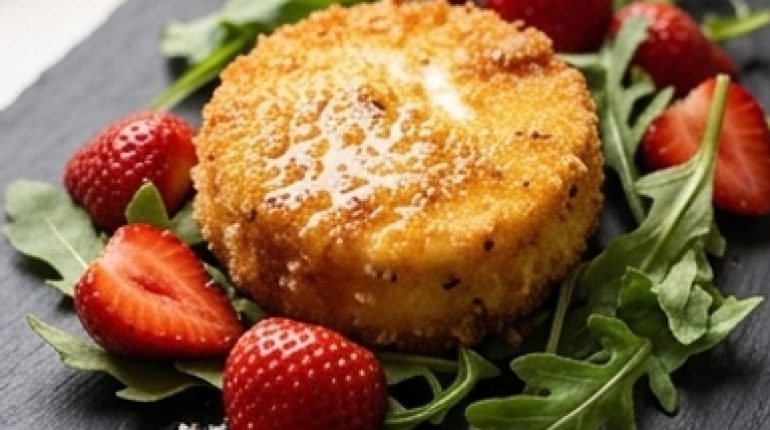 📌 Panierte Cabécous mit Thymian und Balsamico-Röst-Erdbeeren