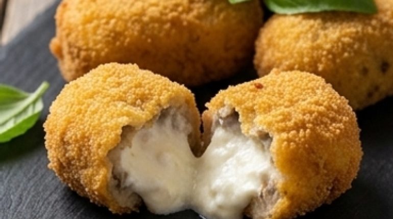 - Stracciatella — Das ist das Innere der Burrata — Mozzarella-Fäden in frischem Rahm. Wenn Sie keine finden, funktioniert eine Burrata, die man öffnet und aushöhlt, perfekt. Vermeiden Sie es, sie durch klassischen Mozzarella zu ersetzen: Er schmilzt schlecht und bleibt beim Frittieren gummiartig.
