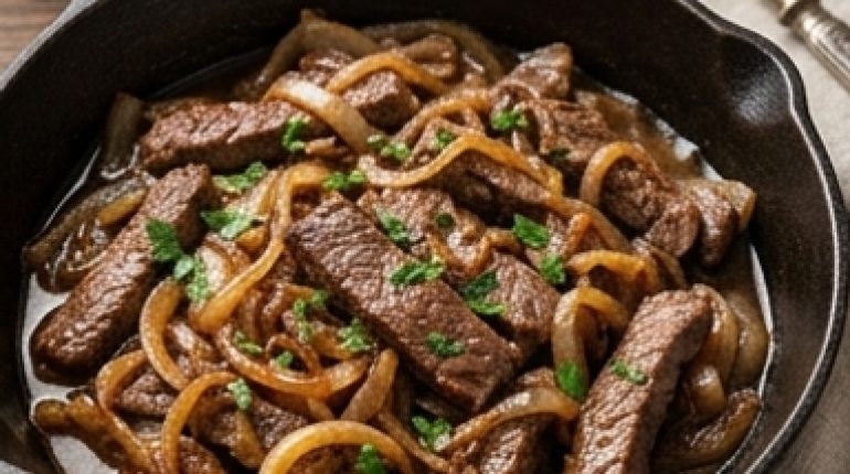 Rindfleisch-Geschnetzeltes hat einen schlechten Ruf. Ein Alltagsgericht, Resteessen, das Standardrezept, wenn man keine Ideen hat. Aber — richtig zubereitet, mit wirklich karamellisierten Zwiebeln und perfekt scharf angebratenem Fleisch — ist es genau das, wonach Ihre Gäste verlangen werden.