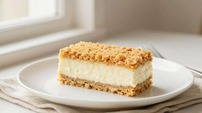 Der Joghurtkuchen in der Bar-Cake-Version kombiniert einen knusprigen Mürbeteigboden mit einer leichten, cremigen Füllung, perfekt für ein einfaches, aber elegantes Dessert. Dieses europäische Dessert zeichnet sich durch seine kontrastreiche Textur aus: Eine mürbe, goldene Kruste trifft auf eine luftige Joghurtcreme. Mit nur 1 Stunde und 15 Minuten Zubereitungszeit und Grundzutaten verspricht dieses zugängliche Rezept eine perfekte Balance zwischen Reichhaltigkeit und Leichtigkeit.