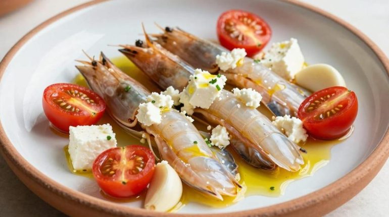 Scampis, Kirschtomaten, Feta, Knoblauch und Olivenöl: Fünf Zutaten genügen für dieses mediterrane Ofengericht, das zarte Meeresfrüchte, säuerliche Süße und salzige Cremigkeit vereint. In weniger als 30 Minuten verwandelt dieses Rezept einfache Produkte in ein raffiniertes Abendessen, bei dem sich die Aromen beim Garen natürlich konzentrieren. Die perfekte Balance zwischen Schnelligkeit und geschmacklicher Eleganz.