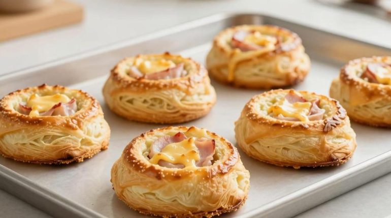 📌 Schinken-Käse-Blätterteigschnecken: Die Technik des engen Aufrollens garantiert ein perfektes Backergebnis in 18 Minuten