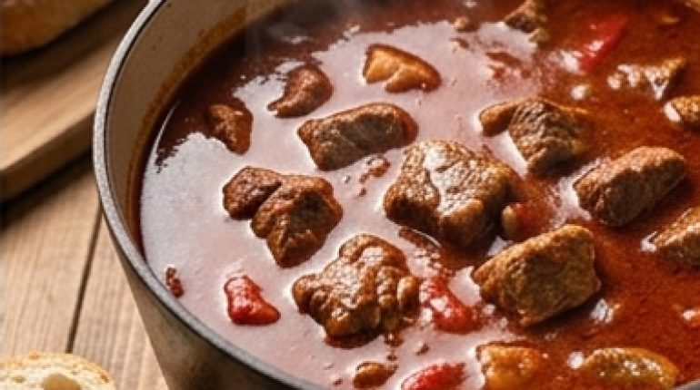 • Edelsüß-Paprika — Das ist das Herz des Rezepts, kein Dekorationsgewürz. Nehmen Sie ungarischen Paprika, wenn Sie ihn finden — er hat eine aromatische Tiefe, die spanischer Paprika nicht ganz erreicht. Rechnen Sie mit zwei gehäuften Esslöffeln, ohne zu sparen: Er gibt die Farbe und 80% des Geschmacks.