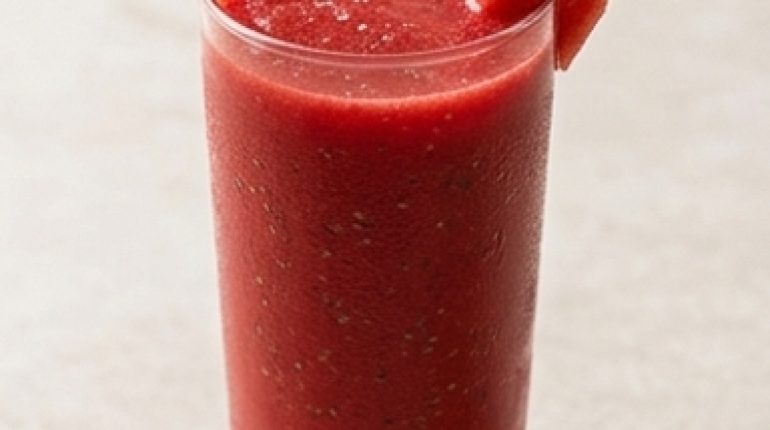 - Wassermelone — Nimm sie reif – klopfe mit der Handfläche darauf. Ein tiefer, hohler Klang wie bei einer Trommel ist ein gutes Zeichen. Ein dumpfer Klang? Lass sie liegen. Kerne sind kein Problem, der Mixer schafft das problemlos.