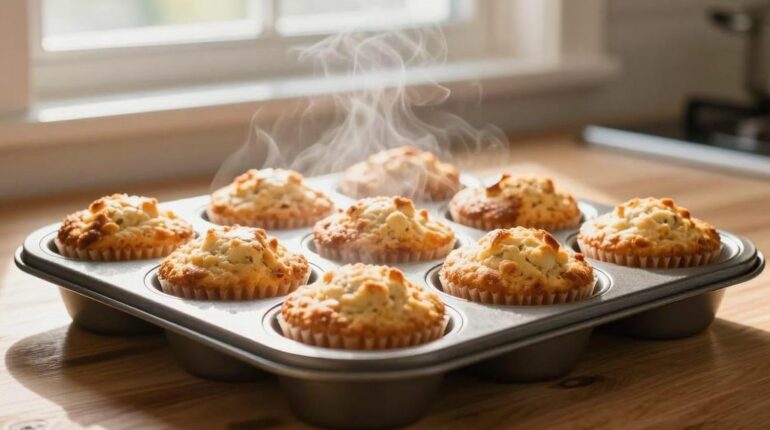 Wurst-Muffins: Hier ist ein Rezept, das in amerikanischen Küchen und bei Kirchenfrühstücken für Furore sorgt. Mit nur 5 Zutaten und einer einzigen Schüssel kombinieren diese herzhaften Häppchen Bisquick, Wurst und Käse zu einem Ergebnis, das innen weich und außen goldbraun ist. Ideal für hektische Morgen oder Brunches, können sie warm oder kalt genossen werden.